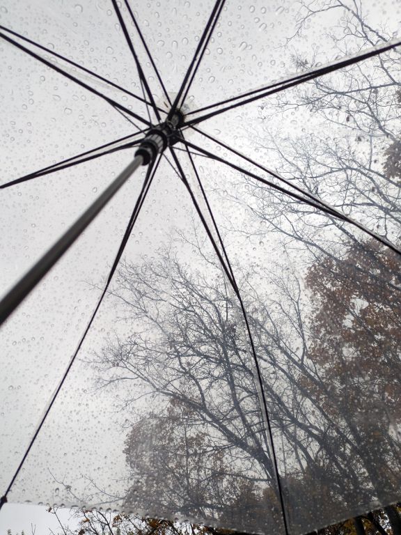 余談ながら散歩の終盤、更に私の傘に落ち葉ひとひら。遠方での仕事、きっと大成功かな。そんな日曜日。